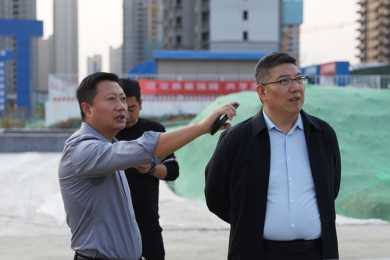 近日,滕投悅府二期項目不斷開拓向前,取得進展,各級領導,各業(yè)務主管部門均來到項目現(xiàn)場對悅府二期項目的工程進展及工程質量、安全方面工作進行調研、檢驗。11月2日,集團總經(jīng)理侯欽君,副總經(jīng)理李正春來到悅府二期現(xiàn)場進行調研工作,在現(xiàn)場聽取了工程三部經(jīng)理王介賀對項目目前整體情況的匯報,對悅府二期項目目前的工程進